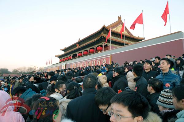 北京市旅游委组织首都群众观看升国旗仪式